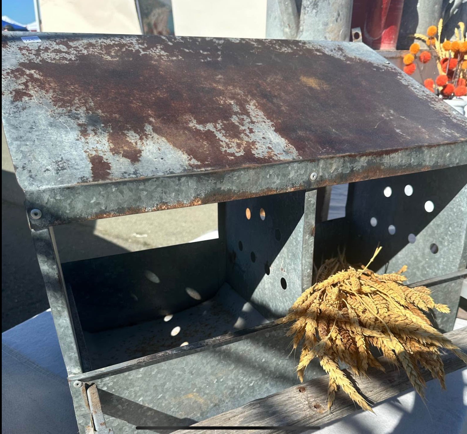 This adorable chicken nester is from Texas and has a slight amount of rustic patina. It's ideal for use as an actual nester for your chickens, or to display plates, toys, towels, plates, etc. It measures approximately 24.5" wide x 18.5" deep x 20" tall.
