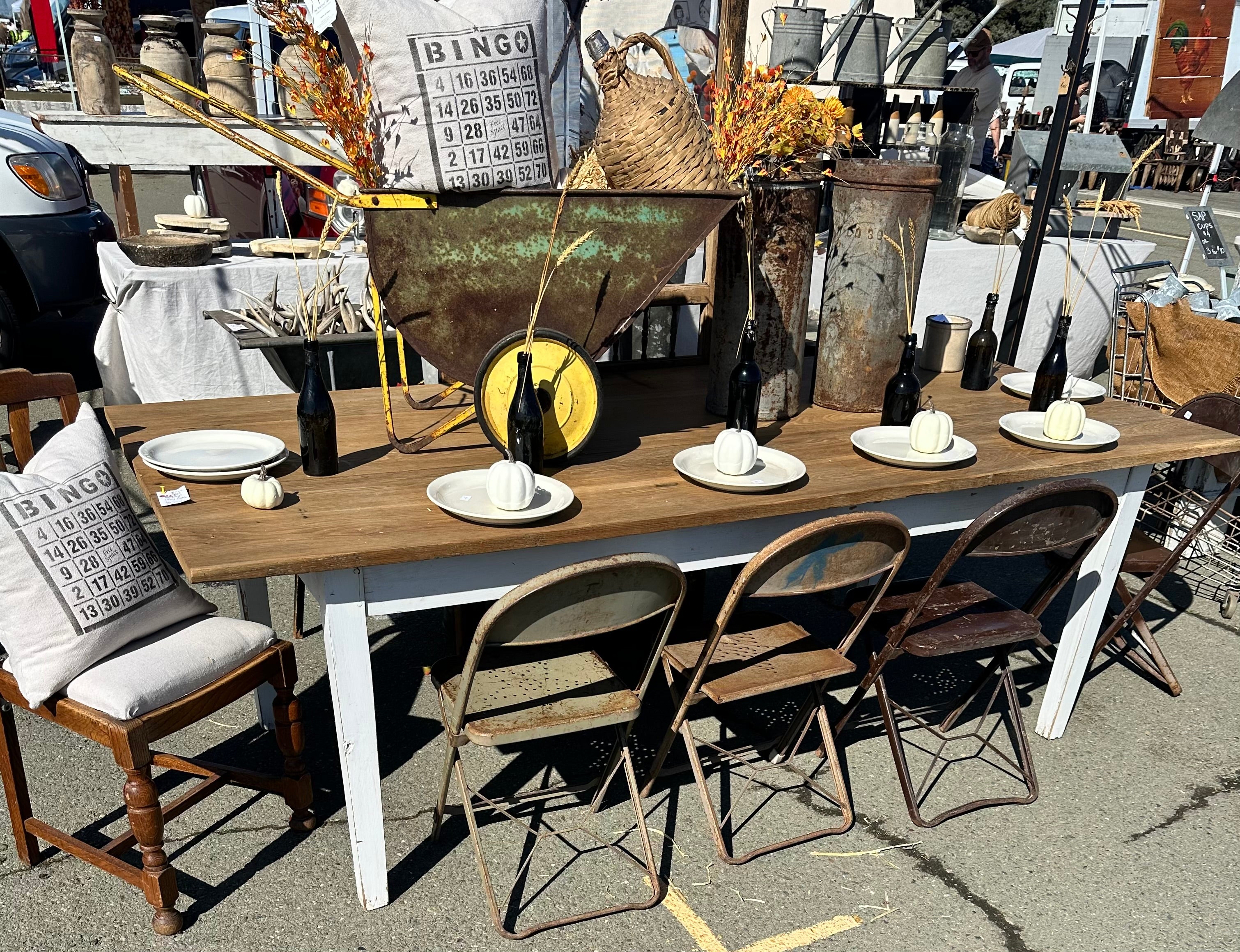 This vintage Texas farmhouse table is made of rare material - long leaf pine. The table top is very thick, sturdy, and eye catching. It measures approximately 95" long x 43.75" wide x 31.5" tall. THIS ITEM IS AVIALABLE FOR LOCAL PICK UP ONLY.
